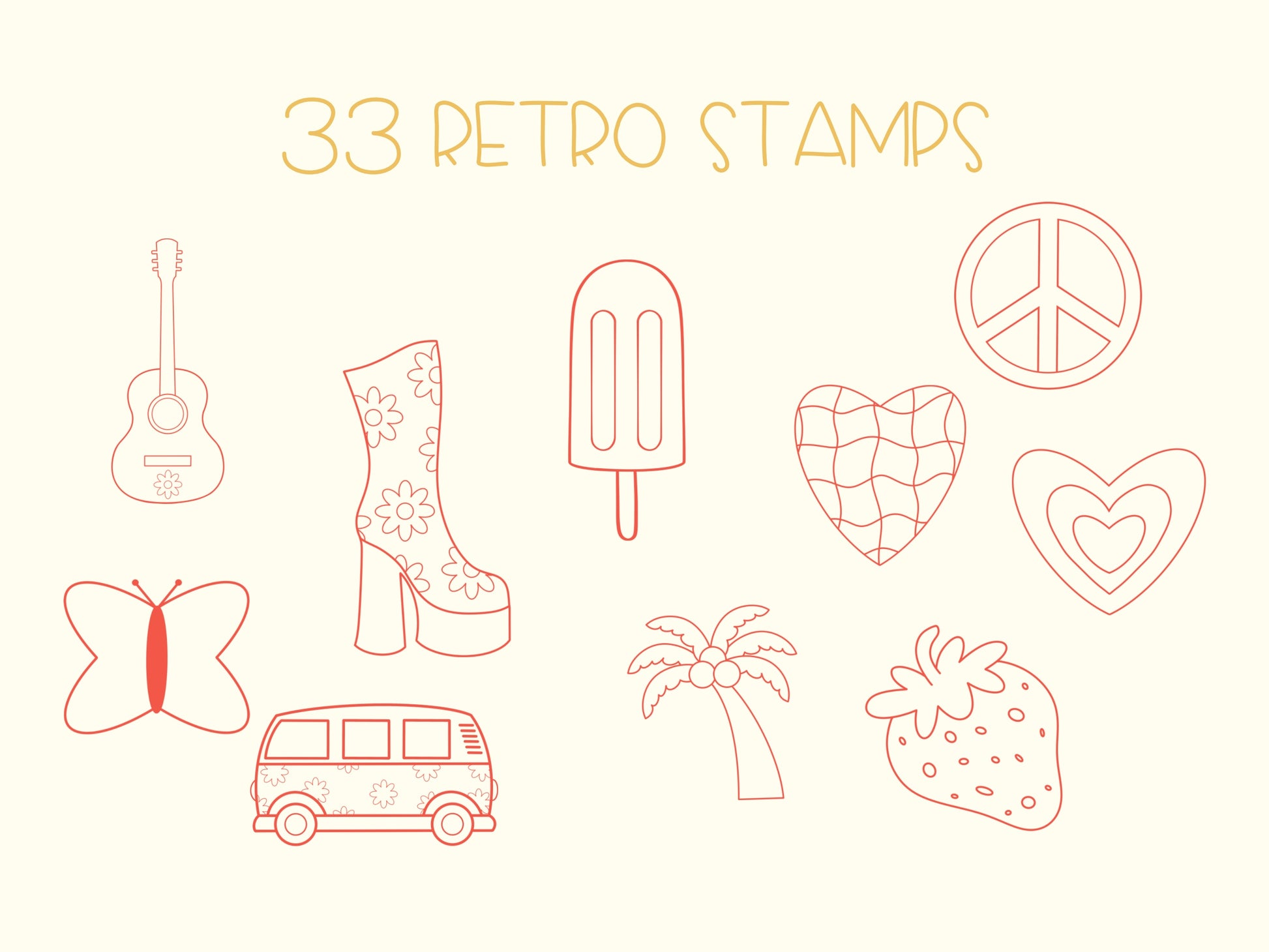 33 RETRO 70s PROCREATE STAMPS